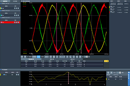 数据采集系统主要是通过以太网对WP4000变频功率分析仪、DP1000直流功率表、VFE2000数据采集仪、EV驱动系统综合测试仪等硬件设备完成数据的高速采集,实时上传用户自定义的波形数据和特征值数据。数据采集系统可以同时监控局域网内的1台或多台设备的测量数据,并进行数据的处理与运算,实现被监控对象的深度分析等功能,快速构建成一套多种动静态状态监测、数据分析与管理的实时数采系统。